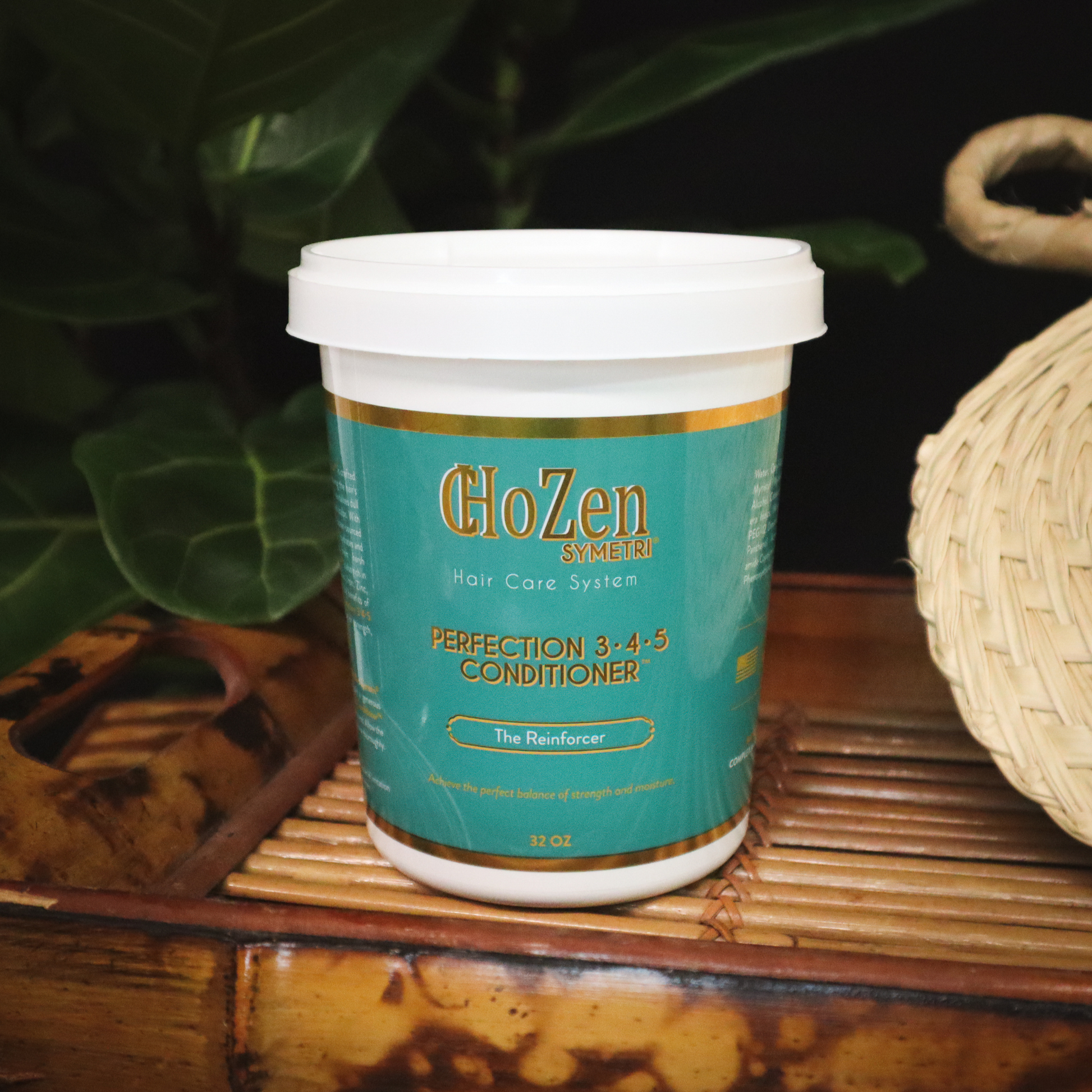 Made with our unique formulation enriched with ocean-sourced moisturizers, Perfection 3・4・5 Conditioner™ deeply hydrates, repairs and infuses essential minerals like riboflavin, magnesium, iron, zinc, calcium, potassium, and iodine into hair. And, with the benefits of mango seed butter, Chozen Symetri® Perfection 3・4・5 Conditioner™ restores softness, elasticity, and a healthy shine while delivering the perfect balance of strength, moisture, softness and bounce to the hair. Fortified with aloe and vitamins A, C, and E, Perfection 3-4-5 Conditioner™ strengthens, hydrates, and promotes hair growth. Pair with CHoZen Symetri® Perfection 3・4・5 Shampoo™ for best results. Elevate your hair game and embark on a journey of stunning transformation for your client’s hair with CHoZen Symetri® Perfection 3-4-5 Shampoo™ and Perfection 3-4-5 Conditioner™ - the non-protein, protein-performative hair care system!